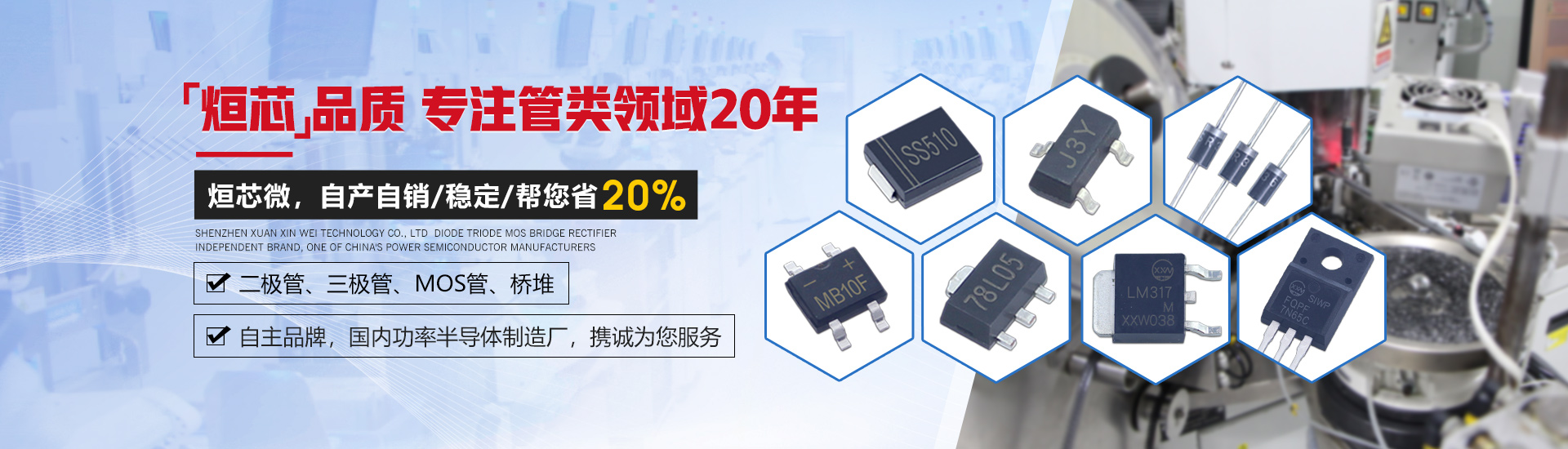 深圳市烜芯微科技有限公司是一家集研发、生产、销售于一体,专注于二极管、三极管,MOS管、桥堆等功率半导体领域发展的企业。采用国际领先的GPP芯片生产工艺及一心多Die高精密制造工艺,拥有功率半导体器件工程实验室,全自动高精密生产设备,产品层层把控,全程可追溯,保障了每只产品的卓越品质。 产品封装包括SMA,SMAF,SMB,SMBF,SMC,SOD-123,SOD-123FL,SOD-323,SOD-323FL,SOD-523,SOD-723,SOT-23,SOT-89,SOT23-3L,SOT23-5L,SOT23-6L,SOT-223,SOT-523,SOT-723,DO-41,DO-15,DO-27,DO-35,R-1,R-6,LL-34,LL-41,TO-277,TO-92,TO-92S,TO-92L,TO-126,TO-251,TO-252,TO-262,TO-263,TO-220,TO-220F,TO-247,TO-3P,TO-264,MBS,MBF,MBM,ABS,UMB,UMSB,DB,DBS,D3K,KBP,GBP,GBU,GBL,GBJ,KBL,KBU,KBJ,KBPC,KBPC6,KBPC8,KBPC-W,DNF,TSSOP-8,TSSOP-16,SOP-4,SOP-6,SOP-8,SOP-10,SOP-14,SOP-16,DIP-4,DIP-6,DIP-8,DIP-10,DIP-14,DIP-16,月产各封装达6亿只。 公司通过了ISO14001环境管理体系认证,产品均获得了ISO9001质量体系认证、UL、SGS等认证,符合欧盟最新RoHs指令。拥有和致力于烜芯微/XXW自主品牌产品的推广,提供技术支持,选型替换,cost down方案及拥有专业的生产管理团队和销售团队,保证了供货稳定及售前选型服务等问题。 公司产品广泛应用于开关电源、适配器、逆变器、控制器、汽车电子、家用电器、通讯设备、无线充、锂电池?;ぐ?、驱动电机、安防警报、太阳能光伏产业等多个领域。取得了国内外众多品牌大厂的认可与合作,我们将坚持奉行“烜芯品质,诚信经营,合作共赢”为公司经营理念!竭诚为新老客户提供优质的产品及服务。