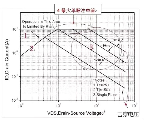 (1)确保在最差条件下,MOSFET的所有功率限制条件均在SOA限制线以内。