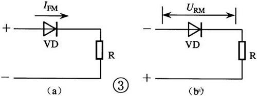 [3]、晶体二极管的主要参数有:(1) 最大整流电流IFMFM,是指允许正向通过PN结的最大平均电流(图③a)。使用中实际工作电流应小于IFM,否则将损坏二极管。(2) 最大反向电压URM,是指反向加在二极管两端而不致引起PN结击穿的最大电压(图③b)。使用中应选用URM大于实际工作电压2倍以上的二极管。(3) 检波或高频整流二极管的最高工作频率fM,至少应2倍于电路实际工作频率。(4) 稳压二极管的稳定电压UZ值应符合电路要求。