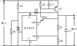 采用NPN与PNP管扩展输入电压电路图图 采用NPN和PNP管扩展输入电压电路图图所示电路中,V1和V2用典型的SCR或晶闸管的方式连接。按图所示电