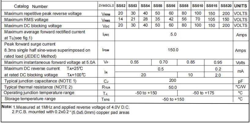 SS510肖特基二极管5A 100V,SMA SMB SMC封装,SS510参数规格书SS510是贴片肖特基二极管5A 100V,SS510封装有SMA,SMB,SMC多种封装,其参数一致